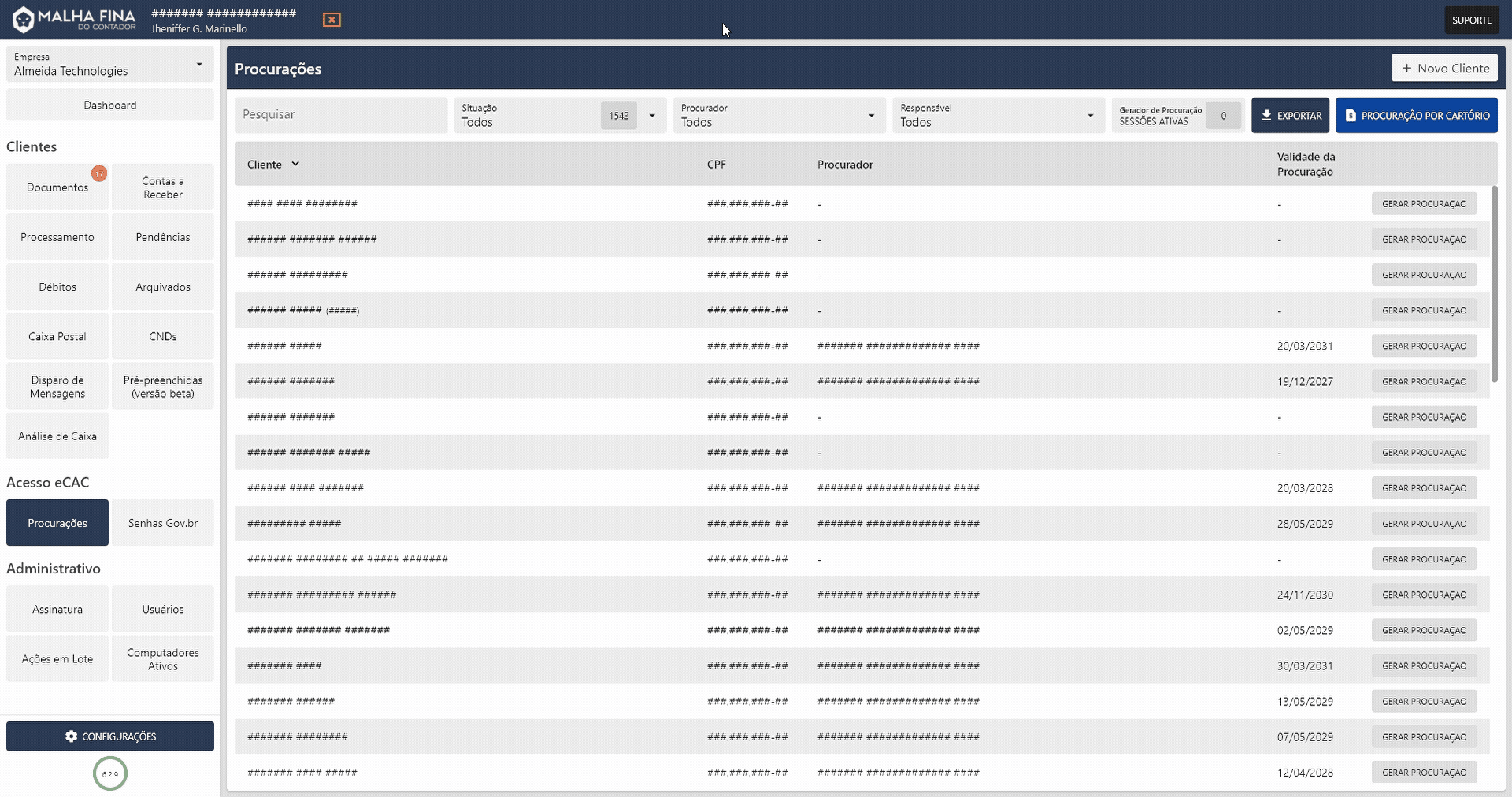 Após isso, o sistema irá gerar o documento de procuração, que poderá ser entregue ao cliente para assinatura e validação em cartório.