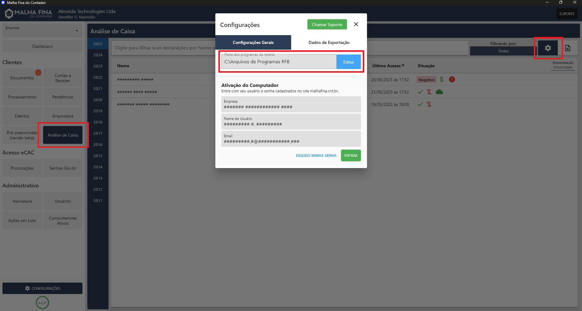 É indispensável anexar o certificado digital da contabilidade ao sistema, pois é por meio dele que o Malha Fina do Contador obtém as procurações dos clientes e realiza as consultas de status de processamento.
